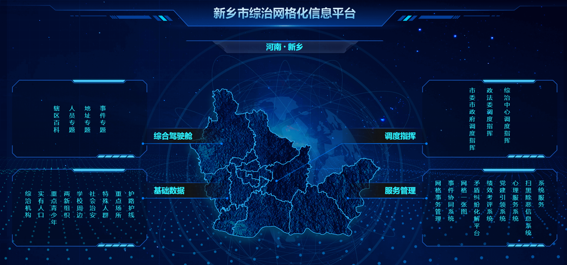 综治网格化管理平台以深化平安建设、加强网格化服务管理等重点工作需求为导向,依托国家电子政务外网,充分运用大数据、云计算、地理信息平台等现代科技手段,对影响国家安全、社会稳定、治安状况和群众安全感的各类社会矛盾和问题信息进行综合集成,对社会管理综合治理信息资源进行合理配置。
