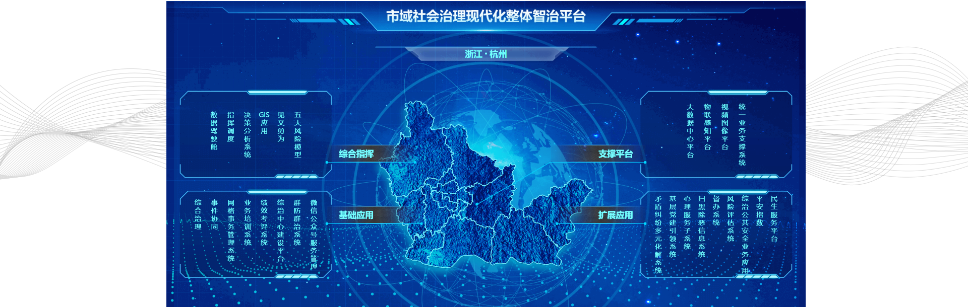 整合GIS各类时空数据、地图服务、各部门数据,打破数据孤岛,提供综合可视化服务,将市域的多元矛盾、舆情风险、公共安全、社会治安、网络安全等情况一屏呈现,一屏统览。平台提供数据融合挖掘、预警预测、指挥调度等能力,引导本市市域社会治理工作布局及发展。