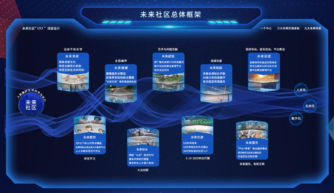 未来乡村(社区)解决方案以高质量推进乡村振兴战略为指引,以党建为统领,以人本化、生态化、数字化为建设方向,以原乡人、归乡人、新乡人为建设主体,以造场景、造邻里、造产业为建设途径,以有人来、有活干、有钱赚为建设定位,以乡土味、乡亲味、乡愁味为建设特色,本着缺什么补什么、需要什么建什么的原则,打造未来产业、风貌、文化、邻里、健康、低碳、交通、智慧、治理等场景,集成“美丽乡村 + 数字乡村 + 共富乡村 + 人文乡村 + 善治乡村”建设,着力构建引领数字生活体验、呈现未来元素、彰显江南韵味的乡村新社区。